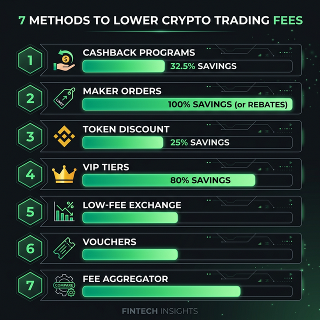 Trading fees are the crypto trader's biggest ongoing cost. On a $100,000 monthly volume, standard fees can cost $50-$100 per month β that's $600-$1,200 per year silently draining your profits. But with the right strategies, you can reduce these costs by 40-71%, turning wasted fees into saved capital.
